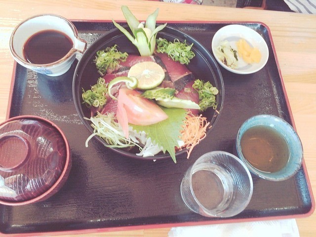 "Hinataya Shokudo" is a Japanese restaurant located in western Kochi. I had the most famous "katsuo (bonito) tataki burger". It was very delicious. It was introduced in a Japanese TV program. Usually katsuo is served on its own slightly roasted on the outside. But I don't know many places where you can eat katsuo in the form of hamburger. "Katsuobushi" is added into its buns. A friend I went with had "katsuo no tataki gozen". It looked so delicious.I recommend this place for fish lovers.