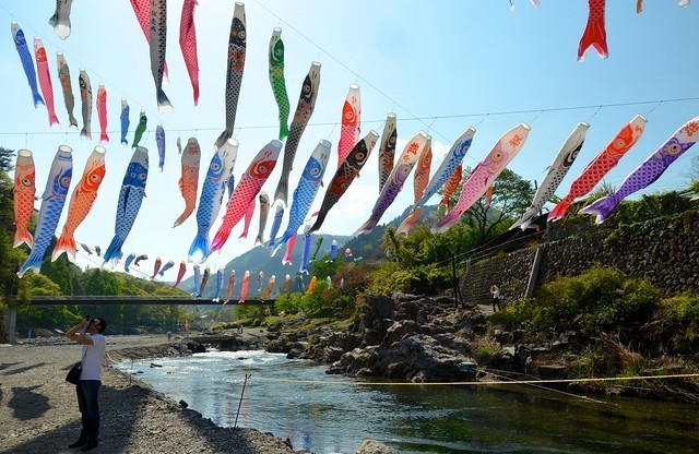 In the small town of Kanna up in the mountains of Fujioka City, Gunma Prefecture is an annual koi-no-bori matsuri, a festival featuring hundreds of donated carp streamers.