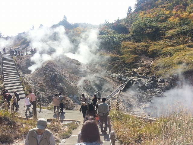 In Akita Prefecture, I went to Hatimandaira(八幡平) roads where you can enjoy beautiful mountains colored with red,yellow and so on. It was like painting. If you come to Hatimandaira,you should drive a rental car to see a scenery. And, I visited Gojokake hot spring(後生掛温泉). You can smell terrible odour of sulphur there. I ate Black boiled egg cooking by the heat of the earth energy. It was not bad.