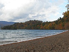 Lake Towada is the largest caldera lake on Honshu, Japan's main island, and is characterized by its two peninsulas. The best way to see the lake is by sightseeing cruises which offer close up views of the peninsulas, while the shores of the lake and the nearby Oirase Stream offer beautiful autumn colors around late October.