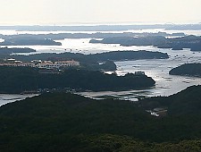 The Amanohashidate Sandbar is a beautiful, three kilometer long isthmus that spans Miyazu Bay in northern Kyoto Prefecture. The sandbar is lined with about 8000 pine trees, and the view of the sandbar from the mountains at either end of the bay has been admired for centuries as one of Japan's three most scenic views.