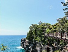 The Jogasaki Coast is a beautiful section of coastline along the Izu Peninsula's eastern shore. There is an attractive hiking trail that follows the coast for almost ten kilometers, offering beautiful views of the jagged cliffs and stone formations along the edge.