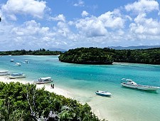 Emerald blue Kabira Bay (Kabirawan) is considered Ishigaki Island's most scenic view. Swimming, snorkeling and diving in the bay are not allowed, but a touristy, 30-minute glass bottom boat ride lets you take a look at the bay's underwater world.