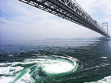 The Naruto Whirlpools in the Naruto Strait are created by the large volumes of water moving between the Seto Inland Sea and the Pacific Ocean between high and low tide, combined with the unique underwater geography of the narrow strait. Visitors can join sightseeing cruises to get right up next to and among the whirlpools.