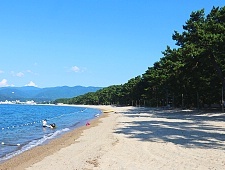 While the eastern shore of Tsuruga Bay is heavily industrialized, the western shore is dominated by wooded hillsides with several sandy beaches.