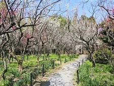 There are two plum groves in the pleasant Naritasan Park, one not far from the main hall of Naritasan Temple at the entrance of the park, the other at the base of the Great Pagoda of Peace. Together they have almost 500 plum trees making a walk through the park even more enjoyable when the flowers are in bloom.