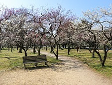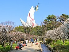 The large public Expo '70 Commemorative Park offers two areas to see plum blossoms. The main spot is west of the Tower of the Sun and main entrance, and offers around 600 plum trees of about 120 varieties. The second and smaller spot is located in the Japanese landscape garden at the northern end of the park with about 80 trees of 40 varieties.