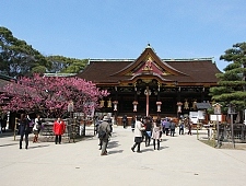 Plum blossoms are one of the symbols of Umenomiya Taisha, and the pleasant paid garden at the back of the shrine boasts a plum grove at its western end. There are about 450 plum trees of around 35 different varieties in the garden.