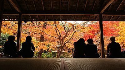 Each year, starting in mid September, the "koyo front" slowly moves southwards from the northern island of Hokkaido until it reaches the lower elevations of central and southern Japan around late November. Some trees around Tokyo and Kyoto remain colorful into December.
