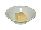 Tofu is made of curdled soy milk, pressed into blocks in a process similar to making cheese. It is a good source of protein and a staple of Japanese cuisine. Tofu is an especially important ingredient in vegetarian Buddhist temple cuisine (shojin ryori). On its own, fresh tofu has a delicate taste. It is a versatile food that can be used in a variety of sweet and savory dishes.