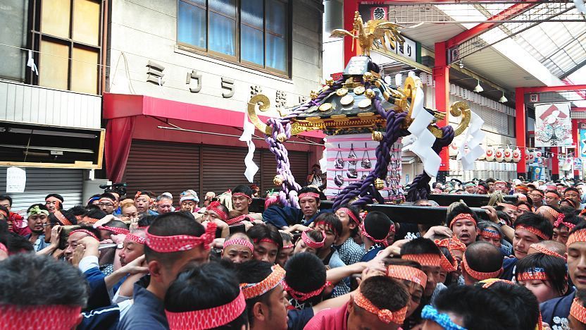An important element of Japanese festivals are processions, in which the local shrine's kami (Shinto deity) is carried through the town in mikoshi (palanquins). It is the only time of the year when the kami leaves the shrine to be carried around town.