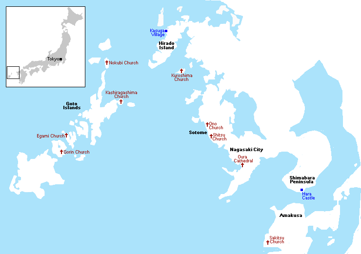The only site outside of Nagasaki Prefecture, the picturesque Sakitsu Village with its Gothic church is located on the Amakusa Islands of Kumamoto Prefecture. The remote Amakusa Islands were another area where Christians went into hiding.