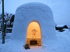 The Yokote Kamakura Festival is held every year on February 15 and 16 in the city of Yokote in southeastern Akita Prefecture. The festival features many igloo-like snow houses, called kamakura, which are built at various locations across the city. Children invite visitors into their kamakura and offer them rice cakes and amazake, a type of warm sweet rice wine with zero or very low alcohol content.
