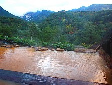 Tokachidake Onsen is a group of hot spring ryokan located more than halfway up the slopes of Mount Tokachidake, an active volcano in Daisetsuzan National Park. Gender segregated outdoor baths with spectacular views onto the Tokachidake mountains can be found here. During the winter months, the landscape is particularly breathtaking.