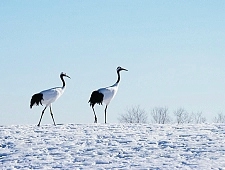 Kushiro Shitsugen National Park in Hokkaido was created in 1987 in order to preserve the country's largest wetland and marsh habitat that supports the only known population of endangered Japanese cranes in the country. Although the park does not receive much snowfall, it offers nature viewing, in particular of the Japanese cranes that appear here in numbers during winter.