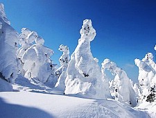 The best place to see snow monsters is at Zao Onsen, a well known hot spring and ski resort in the mountains of Yamagata Prefecture. These "monsters" are formed by heavy snow deposited on trees and frozen into shape by chilling winds. The Snow Monsters form around the peak of the Zao Ski Resort and are usually most spectacular around mid February.