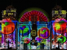 Nakanoshima Island hosts the Osaka Hikari Renaissance illumination event, stretching from Osaka City Hall to the eastern tip of Nakanoshima Park. Several of the historic buildings on the island are lit up with creative displays.