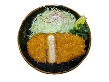 Tonkatsu (とんかつ, "pork cutlet") are thick slices of pork that are breaded and deep fried in a manner similar to German schnitzel. They are typically made from two cuts of pork: the lean and tender hire (ヒレ, tenderloin or filet) and the fattier rosu (ロース, loin). While tonkatsu is by far the most popular katsu dish, there are other variations made of chicken (chikinkatsu), beef (gyukatsu), ham (hamukatsu) and ground meat (menchikatsu).
