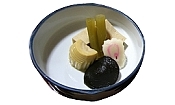 The shokuji set consists of rice, miso soup and pickles (tsukemono) and is always served toward the end of the meal before dessert.
