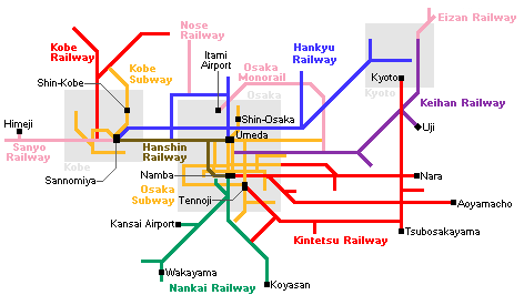 - Hankyu Railway (Kobe - Osaka - Kyoto)