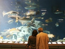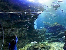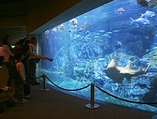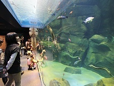 The Tokyo Sealife Aquarium is one of several attractions found at Kasai Rinkai Koen, a large, seaside park built on reclaimed land on the outskirts of central Tokyo. The aquarium's main tank immerses visitors into the center of a school of yellowfin tuna and bonito.