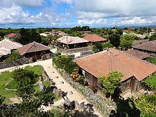 Taketomi Island is a fairly small island that is usually visited as a day trip from Ishigaki Island. The village consists almost entirely of traditional style one-storied houses of which some serve as minshuku accommodations. There are no rental cars on the island, and most visitors either walk or rent a bicycle to travel around, or take a water buffalo cart tour.