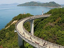 Cycling is a popular means of experiencing the Shimanami Kaido, a 60-kilometer long toll road and cycling route which traverses six islands between Onomichi and Imabari. In addition to the scenery, the islands offer attractions such as temples and museums, as well as minshuku and camping grounds.