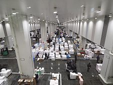 This building combines the auction hall and the wholesale market for fresh fruits and vegetables. Visitors are able to observe the action from windows on the upper floor. A small cluster of restaurants is, furthermore, located, near the entrance of the building: