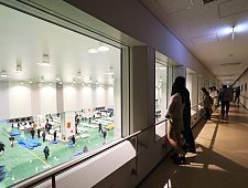 This is the building where the tuna auctions take place between around 5:30 and 6:30 in the mornings. It consists of two main halls: the hall for tuna auctions and the hall where seafood other than tuna is auctioned. For tourists, the building complex houses a small restaurant area and many windows and an observation deck to view the auctions:
