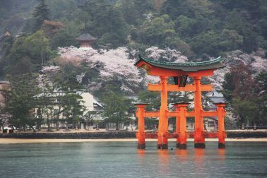 Miyajima ({) is a small island less than an hour outside the city of Hiroshima. It is most famous for its giant torii gate, which at high tide seems to float on the water. The sight is ranked as one of Japan's three best views.