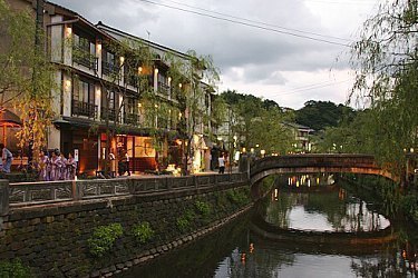Hot springs were discovered in Kinosaki around the 8th century and since then the town has developed into a charmingly old-fashioned onsen town. In the evenings guests of the local ryokan stroll about town in yukata and geta (wooden clogs), visiting the numerous public baths and nostalgic game arcades.