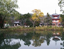 Arashiyama (R) is a pleasant, touristy district in the western outskirts of Kyoto. The area has been a popular destination since the Heian Period (794-1185), when nobles would enjoy its natural setting. Arashiyama is particularly popular during the cherry blossom and fall color seasons.