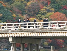 The Togetsukyo Bridge is Arashiyama's well known, central landmark. Many small shops, restaurants and other attractions are found nearby, including Tenryuji Temple, Arashiyama's famous bamboo groves and pleasure boats that are available for rent on the river.