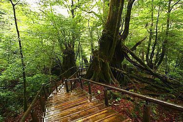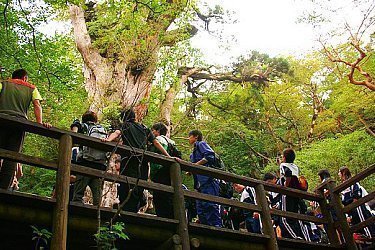Yakushima (v) is a subtropical island off the southern coast of Kyushu and part of Kagoshima Prefecture. It is covered by an extensive cedar forest that contains some of Japan's oldest living trees. Trees more than 1000 years old are affectionately called yakusugi (a combination of Yakushima and sugi, the Japanese word for cedar), the most ancient of which may be over 7000 years old.