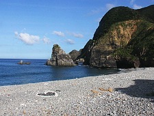 20 minutes from Setouchi by car, this unique beach is characterized by its giant, water-smoothed pebbles that cover the shore between rugged cliffs on both sides. Nearby toilets and a sheltered area make the grasslands behind the beach a nice place for camping.