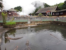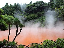 The "hells" (地獄, jigoku) of Beppu are seven spectacular hot springs for viewing rather than bathing, displaying steaming ponds of various colors, bubbling mud pools and other hydrothermal activity.