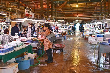 Shiogama (‰–â} or ‰–Š˜) is a port town in Miyagi Prefecture located between Sendai and Matsushima. The city supports a large fishing industry, and a significant portion of Japan's tuna and swordfish catch is processed along Shiogama's waterfronts. Its vibrant fish markets, such as the publicly accessible Shiogama Fish Market, supply fresh seafood to nearby Sendai, Tokyo and elsewhere. Not surprisingly, Shiogama is famous for its local seafood, especially its sushi, and boasts the highest number of sushi restaurants per capita in Japan.
