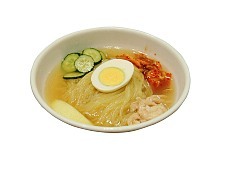 Morioka Reimen, as it is more popularly known outside of Morioka, was originally a Korean noodle dish. It is said to be the creation of a North Korean resident of Morioka who wanted to recreate the cold noodles he had as a child. The noodles are made of potato starch and flour, giving it a slightly glassy sheen. The broth is chilled and the dish has toppings like sliced meat, kimchi, a slice of fruit (usually pear, apple or watermelon), half a hard boiled egg, and cucumbers.