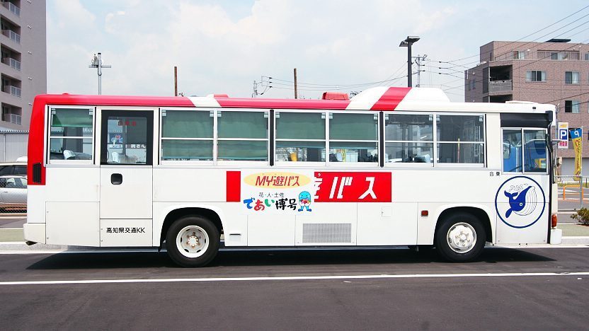 Tosaden also operates buses that provide access to Katsurahama Beach. Furthermore, there is the My Yu Bus, a bus line for tourists, which connects central Kochi with Godaisan and Katsurahama roughly hourly. The cost is 900 yen for a day of unlimited rides between Kochi Station and Godaisan, and 1300 yen for a day of unlimited rides between Kochi Station and Katsurahama.
