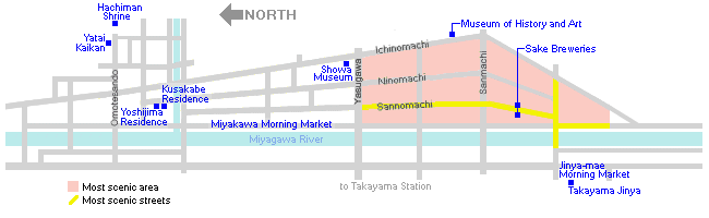 Takayama's old town can be reached in a ten minute walk from Takayama Station.