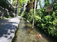 Igawa Lane begins behind the Tourist Center and runs for about 200 meters along a small water canal through a residential neighborhood. The water runs quickly through the canal, providing an opportunity to watch the koi (carp) swimming against the current.