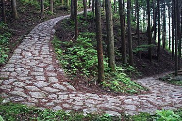 The Kisoji became even more important from the beginning of the Edo Period (1603-1868), when it was amalgamated with other routes in the formation of the 500 km long Nakasendo. The Nakasendo ("path through mountains") was one of the two main routes that connected Edo and Kyoto. It contrasted with the other principal transportation route of the time, the Tokaido, which ran along the sea shore.