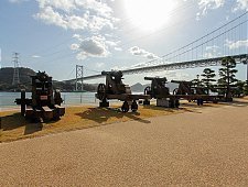 The Kanmon Bridge is one of the major attractions in Shimonoseki. The suspension bridge has a length of 1068 meters and six car lanes, connecting Honshu to Kyushu across the strait. There are a few sites of interest around the bridge: