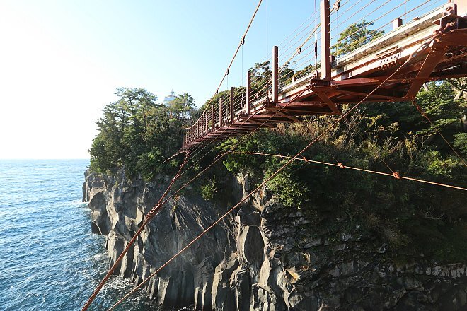 Shirahama Beach (l) is an 800 meter long beach and one of Izu's most famous and popular attractions. People come to enjoy the sand and sun, and the area is also known for relatively good surfing conditions. The beach is about five kilometers east of Izukyu-Shimoda Station, parallel to the main road. Shirahama Jinja, a pretty Shinto shrine, stands along the beach.