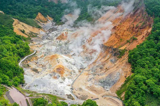 Toyako Onsen (Ή, Tōyako Onsen) is a touristy hot spring resort town along the shore of Lake Toya, just at the foot of Mount Usu.