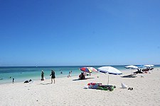Like elsewhere in Okinawa, the beaches of Kumejima, snorkeling and diving are among the principal attractions for visitors. Hatenohama Beach, an approximately seven kilometer long sand bar surrounded by water just east of the island, is Kumejima's most famous attraction. The beach is highly regarded for its white sand, but can only be accessed by joining a tour. The other beaches of Kumejima are also quite attractive, and are generally less busy than the beaches found on Okinawa Honto.