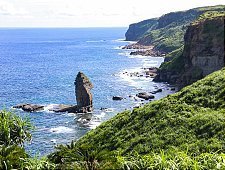 Yonaguni Island (^ί, Yonaguni-jima) is the westernmost island of Japan. It is located in Okinawa Prefecture and is a part of the Yaeyama Islands. The small island has a circumference of about 30 kilometers and a population of under 2000 people. It is known for marine activities like scuba diving and its native fauna, which includes the Atlas moth and Yonaguni horse.
