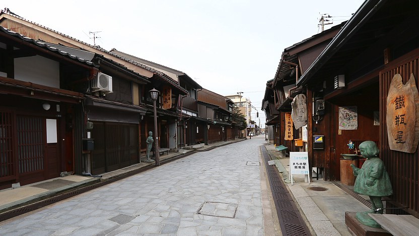 Yamachosuji and Kanayamachi are in central Takaoka, a 15-25 minute walk from Takaoka Station. Alternatively, take the Manyo tram line to Kataharamachi Station (4 minutes, 200 yen one way) from where Yamachosuji can be reached in a three minute walk and Kanayamachi in a ten minute walk.