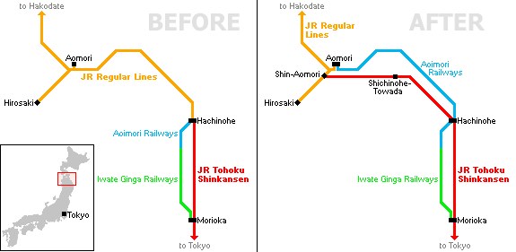| December 2010: Extension of the Tohoku Shinkansen to Aomori |