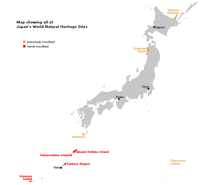 The areas are all found in the subtropical Nansei island chain that runs between Kyushu and Taiwan and is part of Okinawa and Kagoshima prefectures. The islands have been separated from the continent and other landmasses for millions of years, and therefore harbor a significant number of endemic and rare animals and plants, including the Iriomote leopard cat, the Amami rabbit and the Okinawa rail.